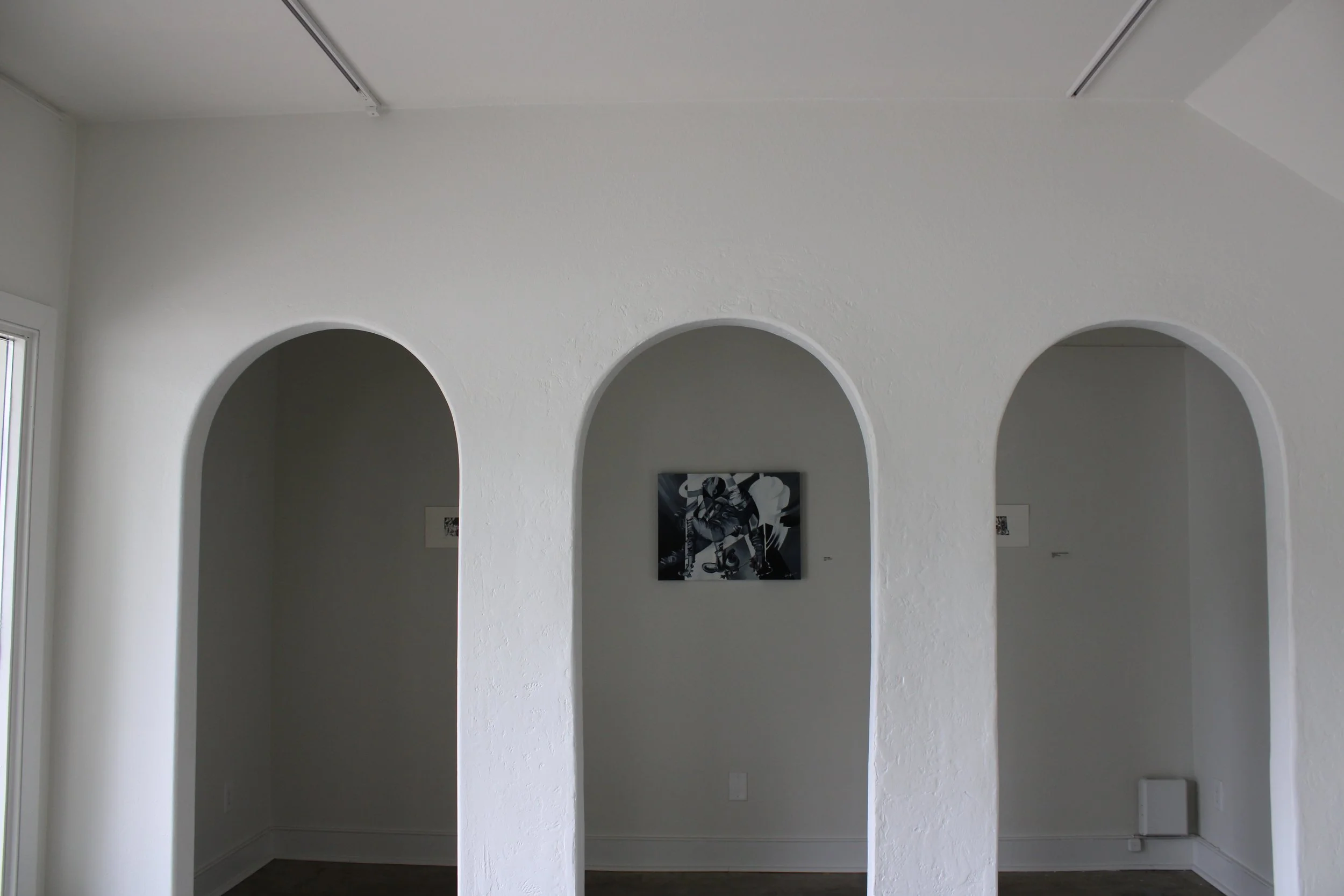 Going Through the Movements is a series of paintings, prints, and drawings I have made over the past two years. The choice of material is intuitive and responds to the inspiration specific to each work. These manifest in oil on canvas, oil on wood board, intaglio, linocut, and graphite on paper.